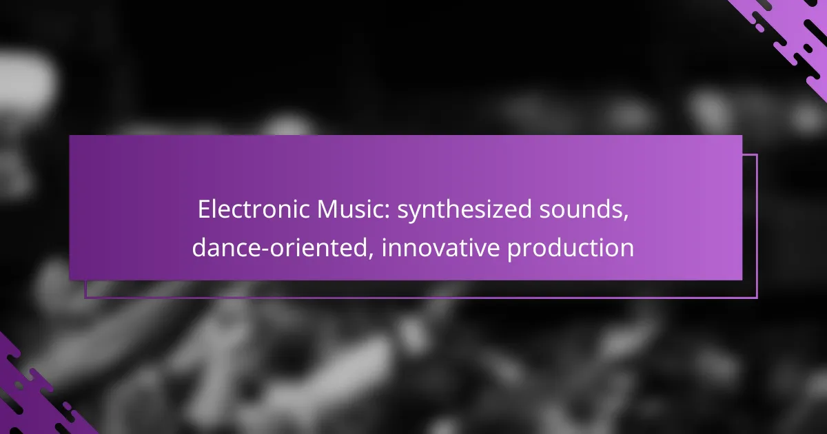 Electronic music is a vibrant genre characterized by synthesized sounds and innovative production techniques that captivate listeners and dancers alike. Utilizing technology such as synthesizers and digital audio workstations, it creates dynamic, dance-oriented tracks that resonate across various subgenres like house, techno, and trance. This genre not only shapes the soundscape of modern dance culture but also inspires movement and energy on dance floors around the world.