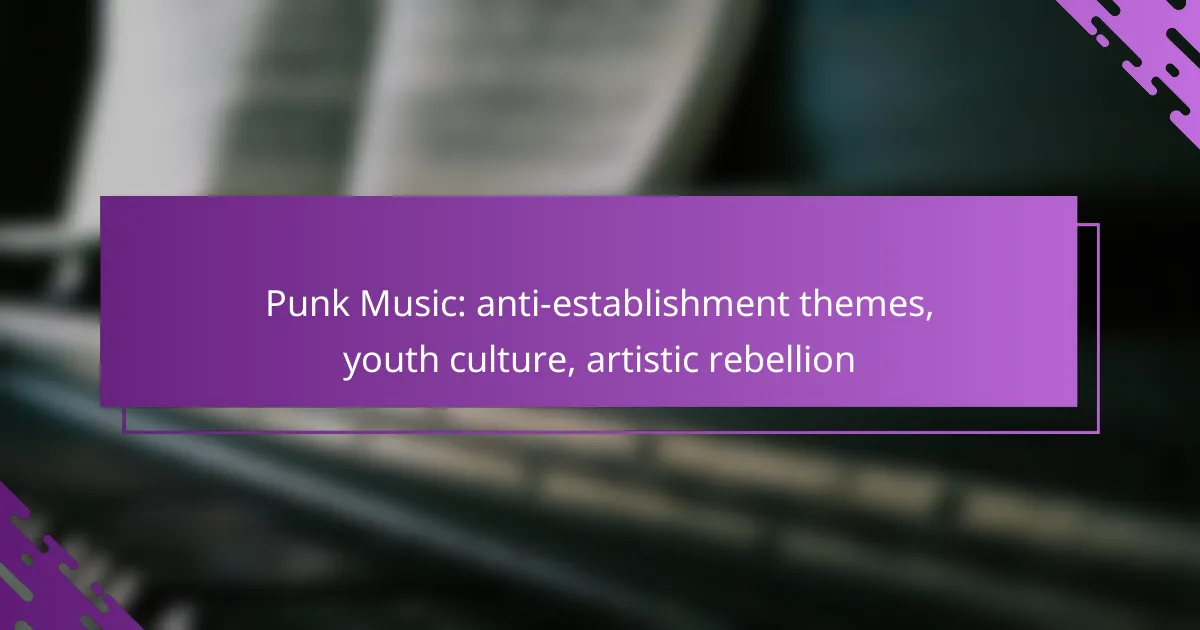 Punk music serves as a powerful voice of anti-establishment sentiment, challenging societal norms and expressing dissent against authority. With its raw sound and provocative lyrics, it resonates deeply with youth culture, reflecting their struggles and aspirations while fostering a spirit of artistic rebellion. This genre not only embodies defiance but also encourages artists to challenge conventions and embrace individuality in their creative expressions.